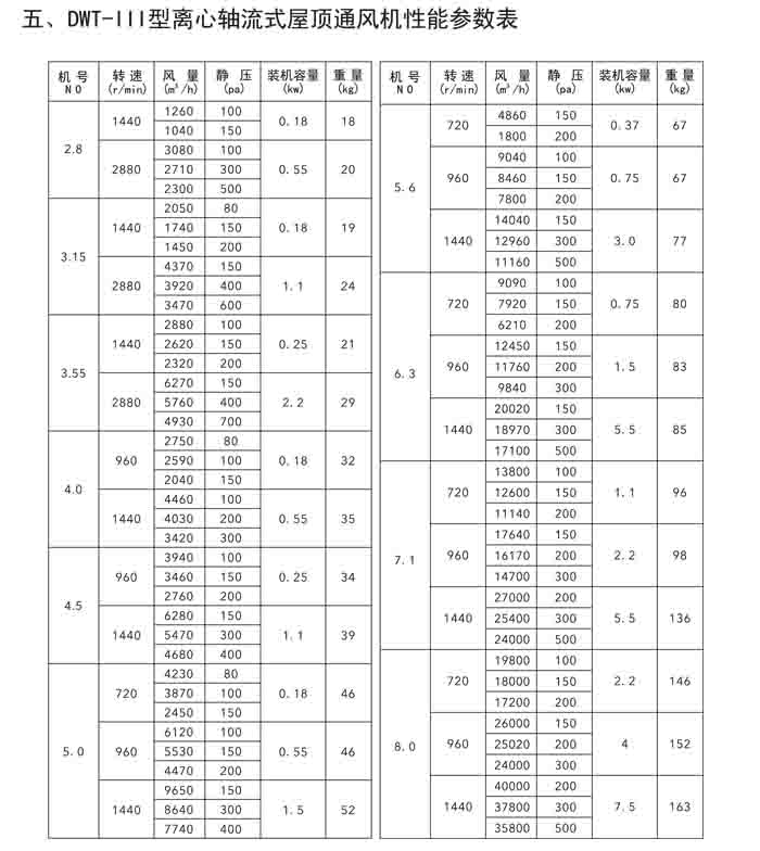 三、DWT-IV 系列無電機渦輪屋頂排風機