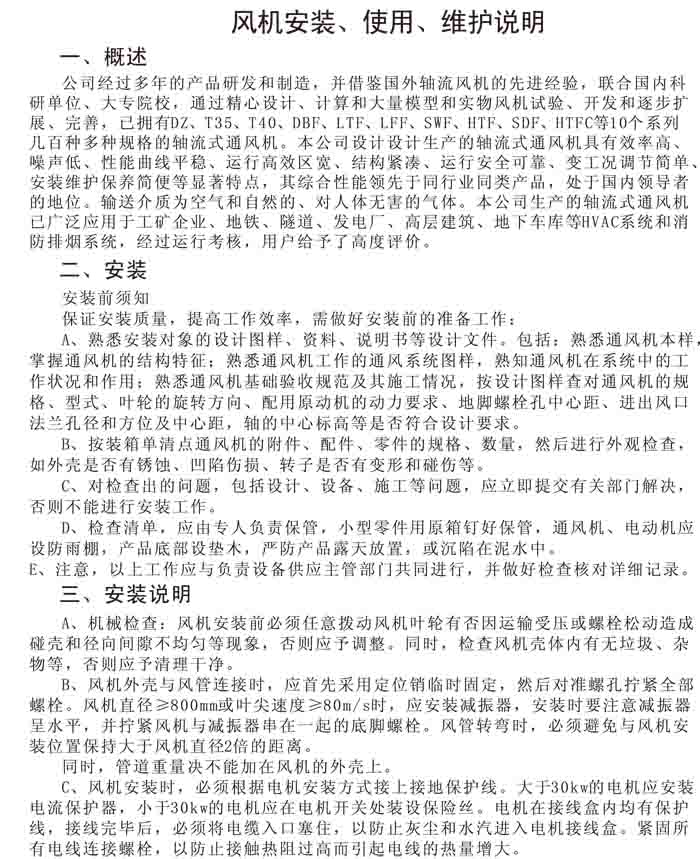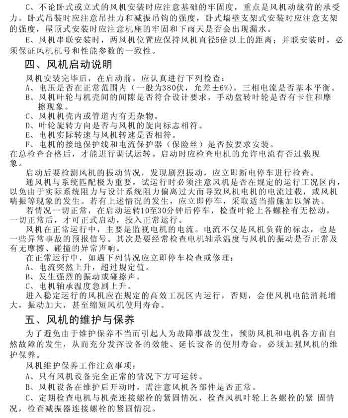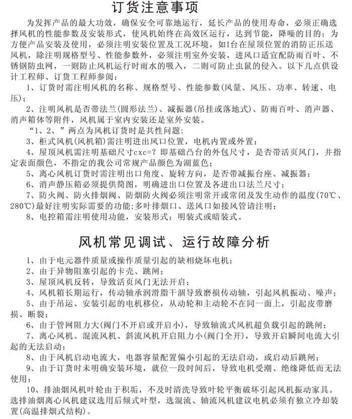 · 一、風(fēng)機(jī)選用參考、安裝維護(hù)使用說(shuō)明、常見(jiàn)故障分析、訂貨注意事項(xiàng)